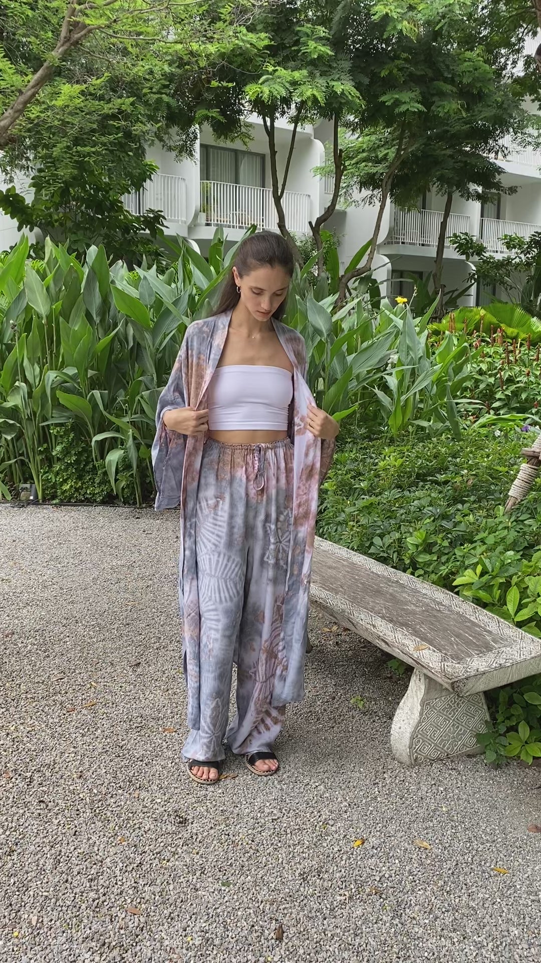 Nuestro Kimono Unisex Maxi Tie Dye está diseñado para un look relajado y moderno, ideal para usar sobre cualquier conjunto.